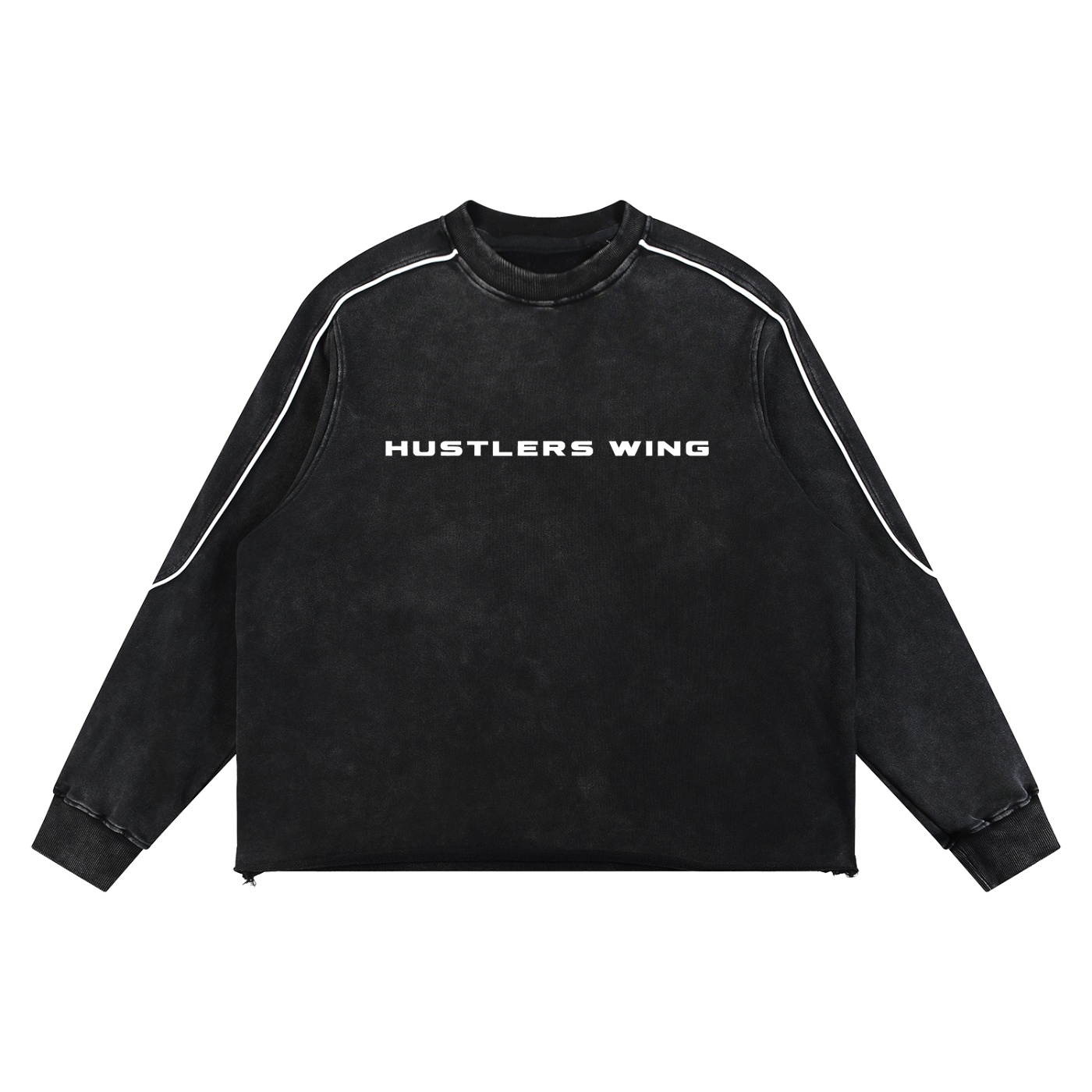 The Mineral Wash Hustlers Wing Sweatshirt delivers a refined streetwear aesthetic with a vintage edge. Designed with a washed black finish, each piece carries a unique texture that gives it a worn-in, premium feel straight out the box.